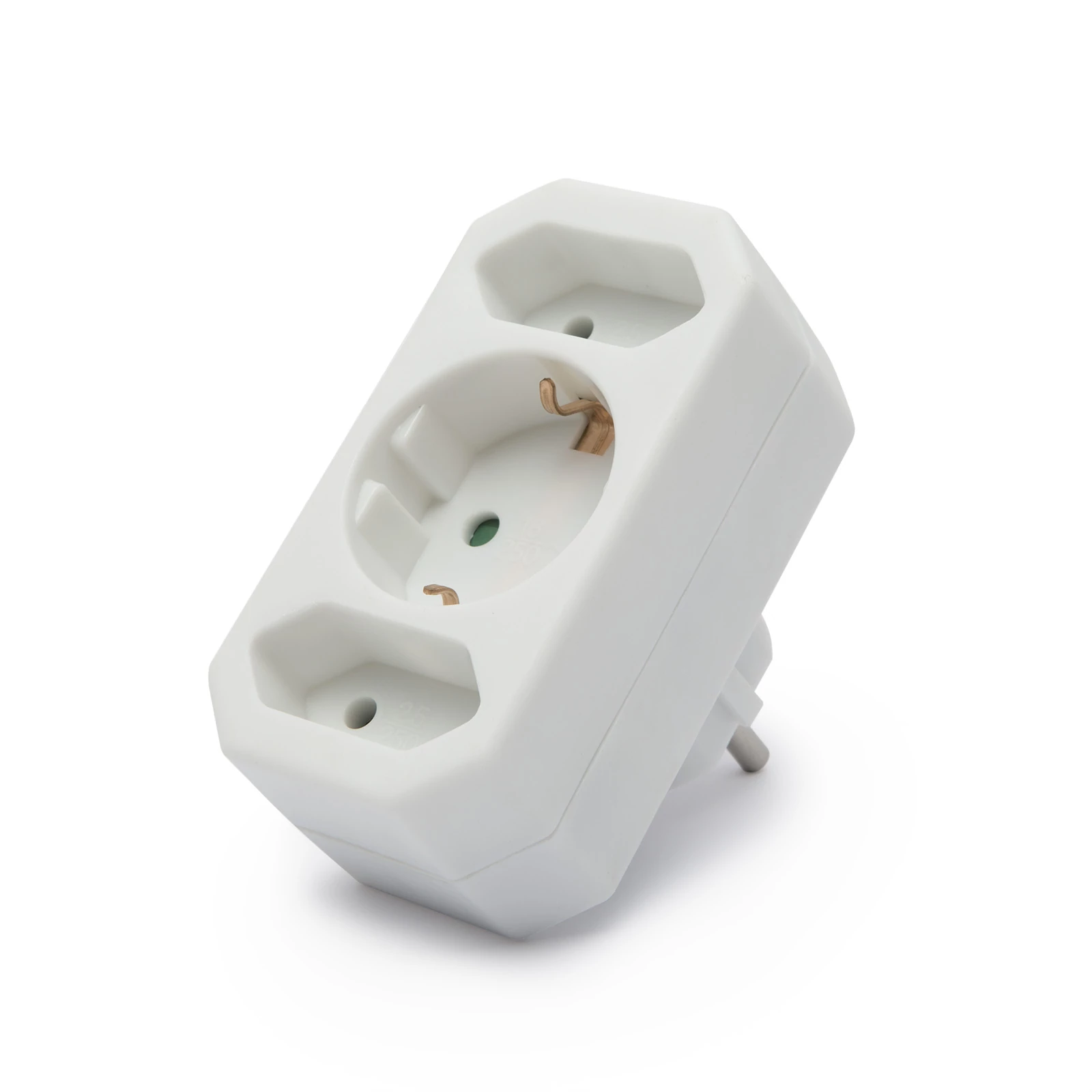 1 + 2-es fali elosztó, amely 3 eszköz egyidejű csatlakoztatását biztosítja a hálózathoz, így nem kell lemondania egyik eszközének használatáról sem. 1 hagyományos és 2 db EURO aljzattal, például ideális lehet konyha eszközök, telefontöltő csatlakoztatására.