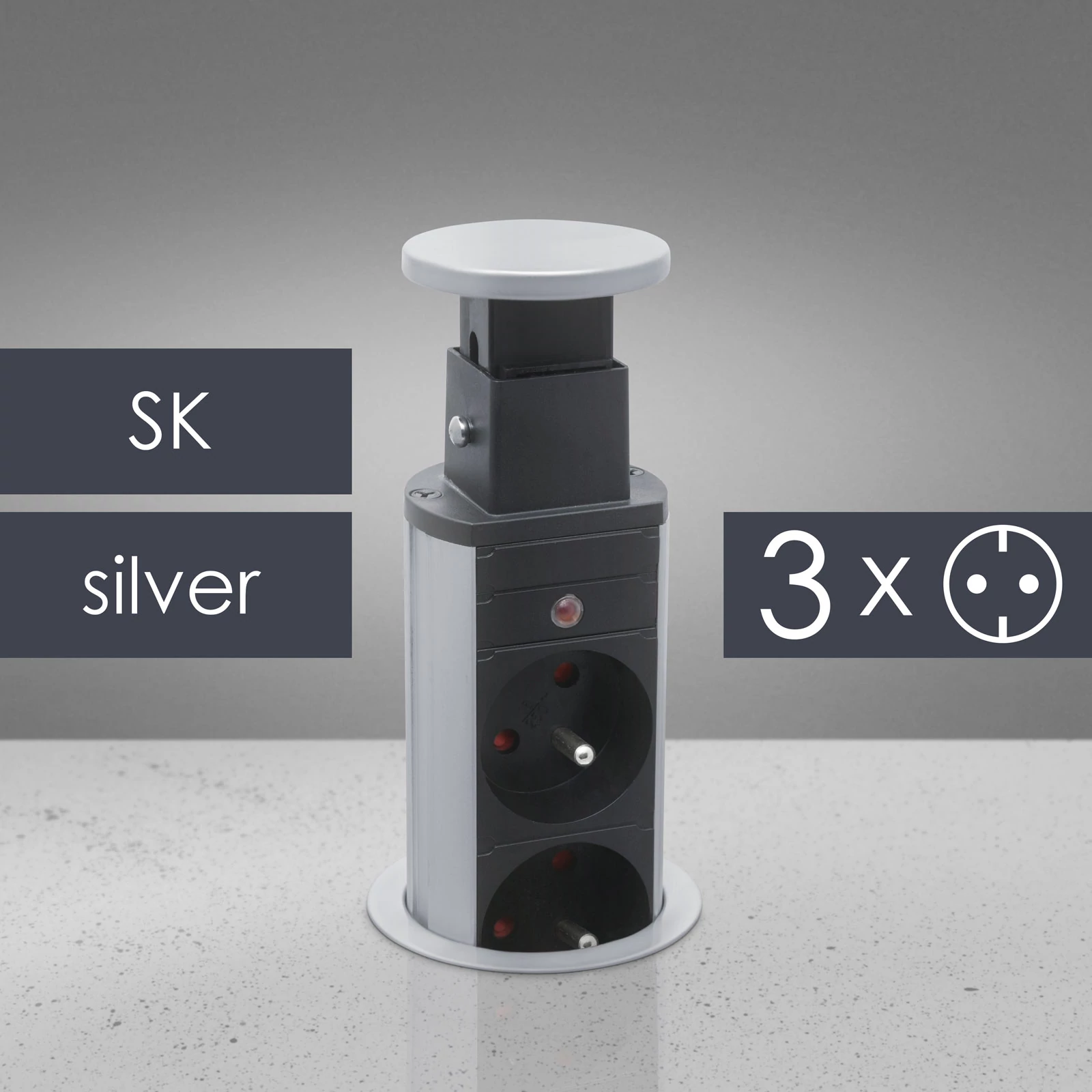 Süllyeszthető elosztó irodai és otthoni felhasználásra, fém házzal. Asztala, bútora legyen mindig elegáns és rendezett, mégis funkcionális. 3 db gyermekvédelemmel ellátott aljzattal. A rejtett elosztó kiváló megoldás lehet ha már például kész konyhával rendelkezik, de nincs elegendő konnektor a kívánt helyen. Ilyenkor falvésés és villamos hálózat bővítés nélkül, remek alternatíva lehet egy rejtett elosztó. Egy mozdulat és máris rendelkezésre áll 3 szabad konnektor. Ideális lehet olyan elektromos eszközökhöz, amit nem folyamatosan használunk, kenyérpirító, vízforraló... Ha használaton kívül vannak, a "töltőoszlop" egy mozdulattal elrejthető, ezzel is megkönnyítve például a takarítást, valamint rendezett, letisztult külsőt ad a helységnek.| Üzemi feszültség: | 230 V |